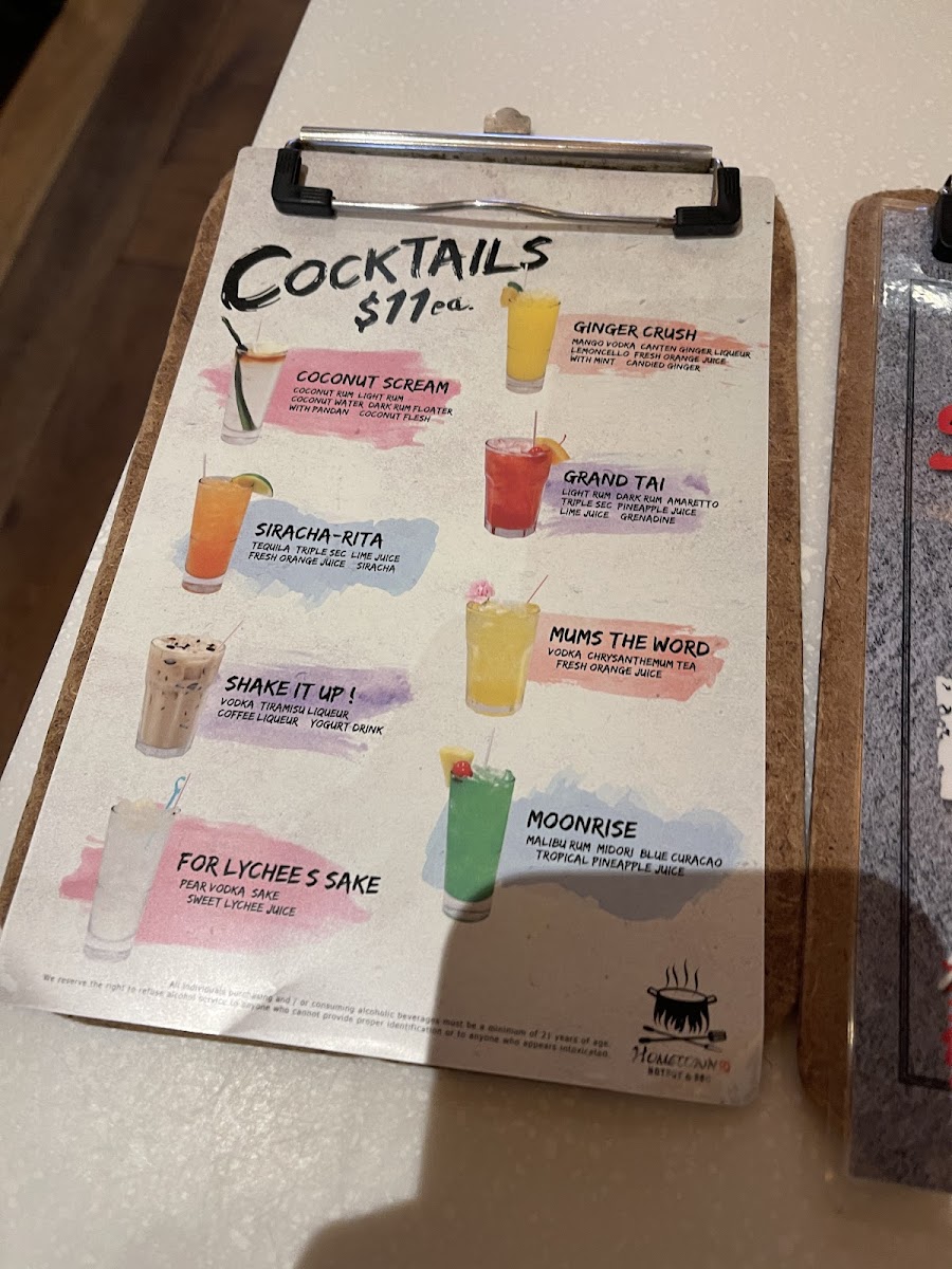 Condiments and Extras include a self-serve condiment bar with ingredients like peppers and soy milk, allowing guests to tailor their dipping sauces and enhance flavors according to their preferences.